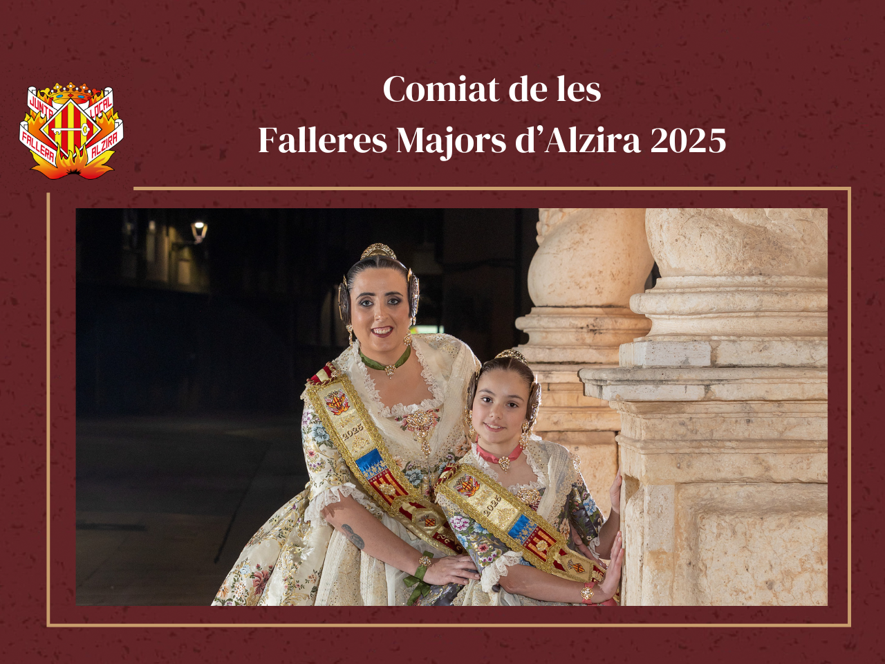 Des de la Junta Local Fallera d’Alzira volem transmetre el nostre agraïment i reconeixement a Ana i Valeria per un any extraordinari. Les Falles 2025 arriben al seu final, però els moments viscuts, l’afecte compartit i l’empremta deixada en la nostra ciutat perduraran per sempre.