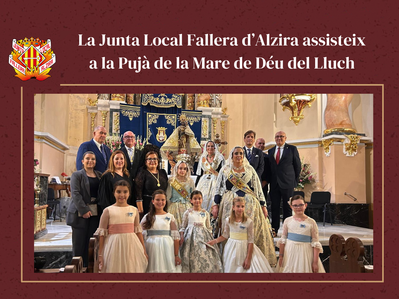 La Junta Local Fallera d’Alzira assisteix a la Pujà de la Mare de Déu del Lluch