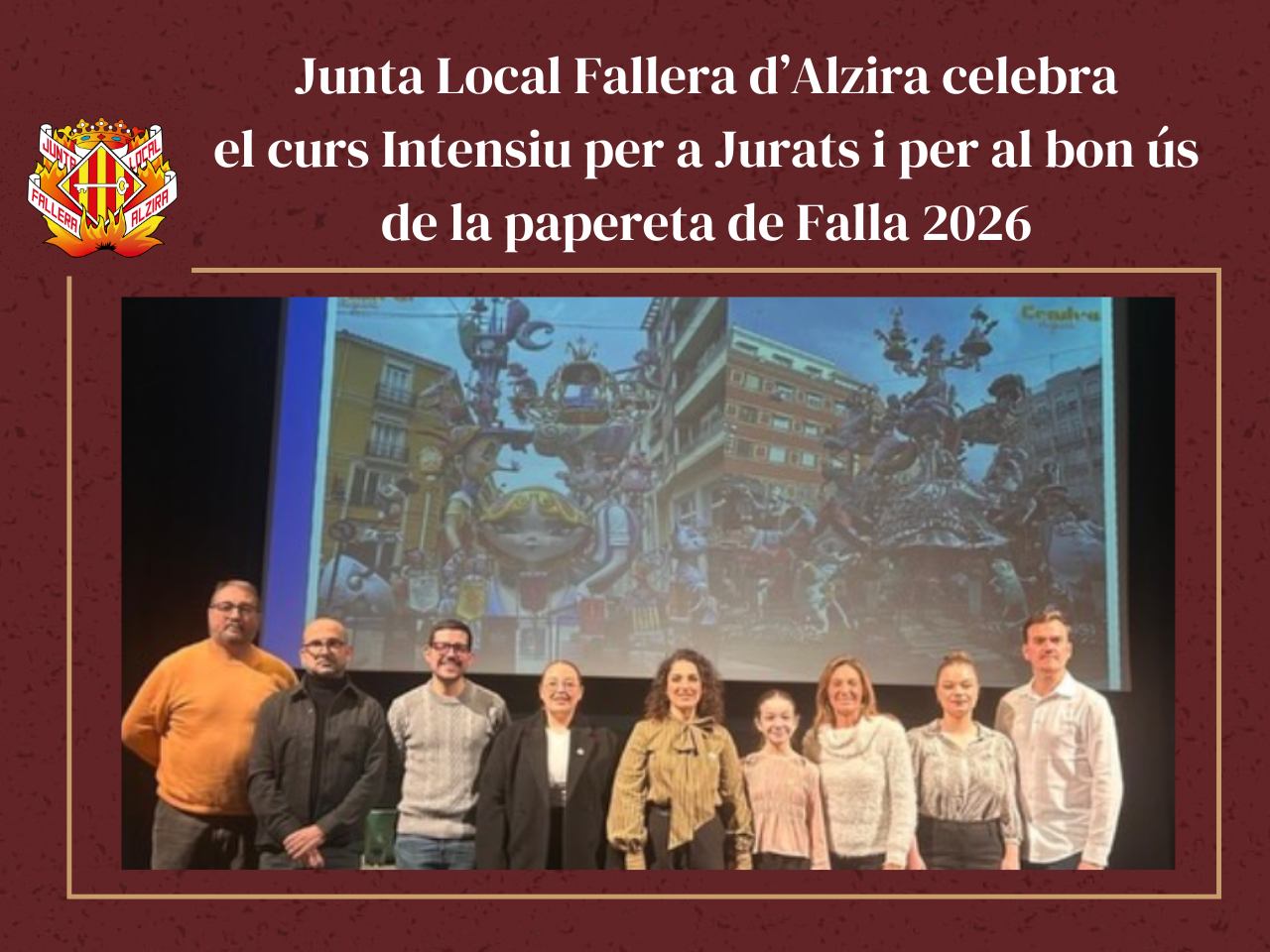 Dissabte, 13 de desembre de 2025.- Este matí ha tingut lloc a Alzira l’Intensiu per a Jurats i curs per al bon ús de la papereta de Falla 2026, una jornada formativa organitzada per la Junta Local Fallera d’Alzira amb l’objectiu de garantir un procés de valoració rigorós, clar i homogeni en els pròxims concursos fallers.