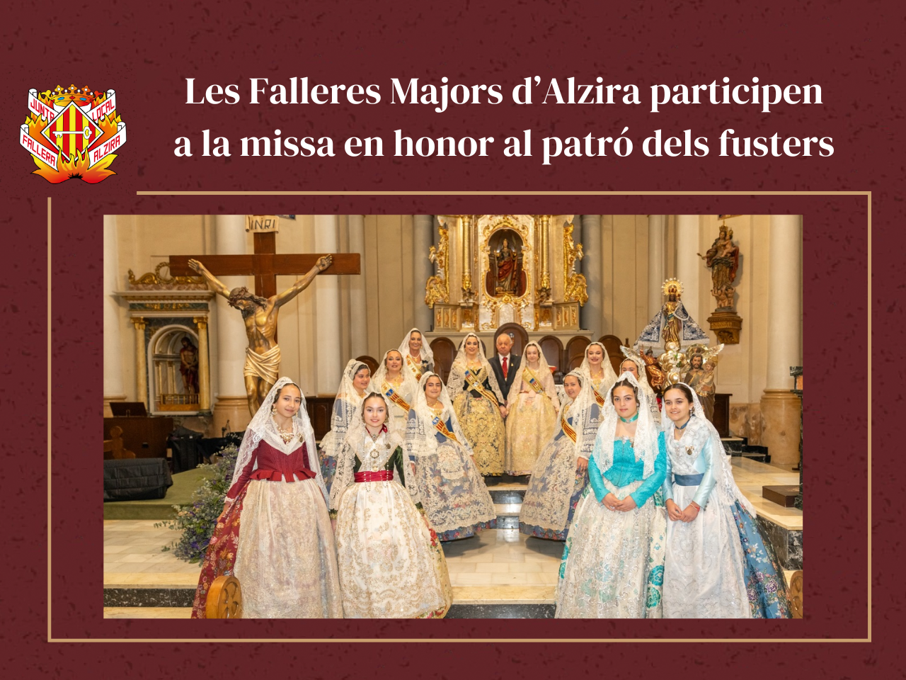 Les Falleres Majors d’Alzira participen a la missa en honor al patró dels fusters